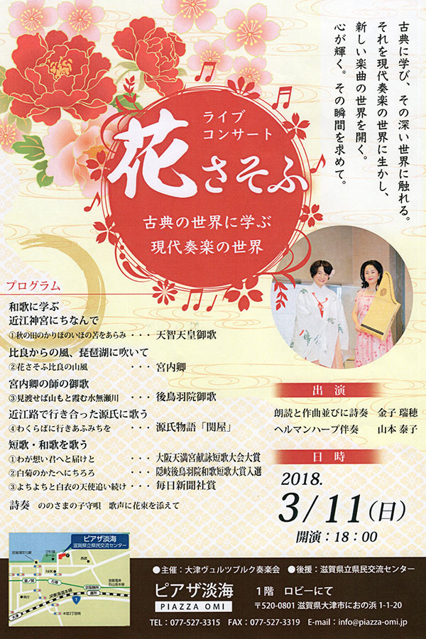 詩と音楽に関する活動をする時には、いつも思い浮かぶ先人よりの贈り物です。この小さな奏楽会の活動が、すこしでも皆様方の癒しになれば、と思っています。