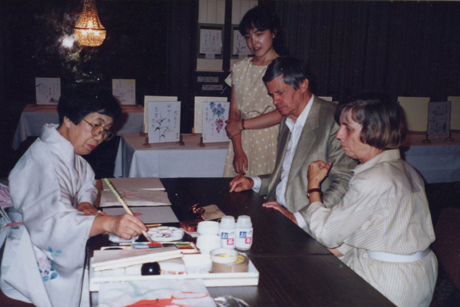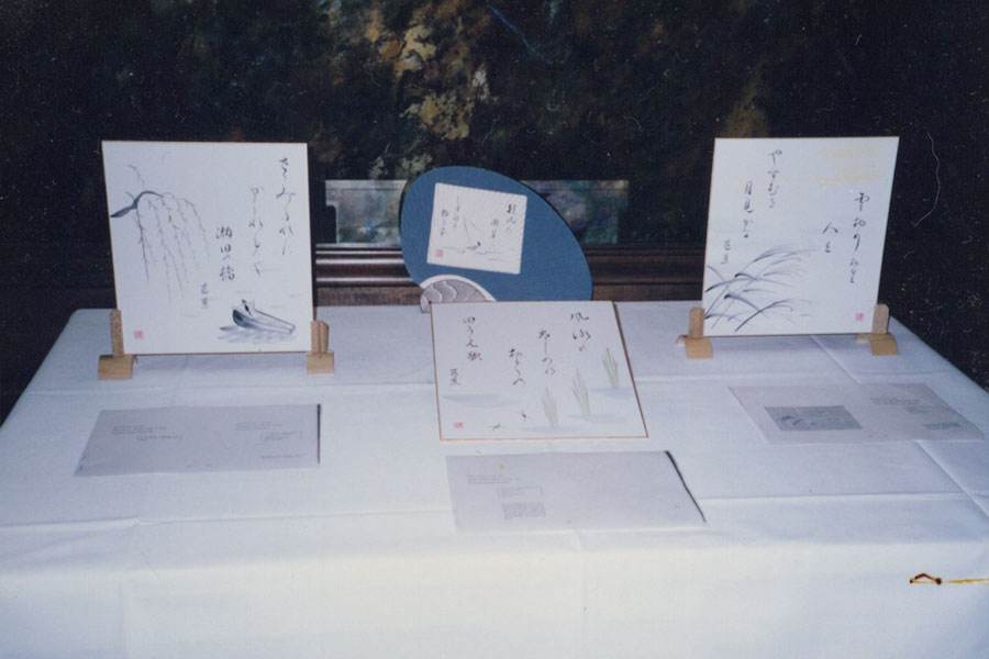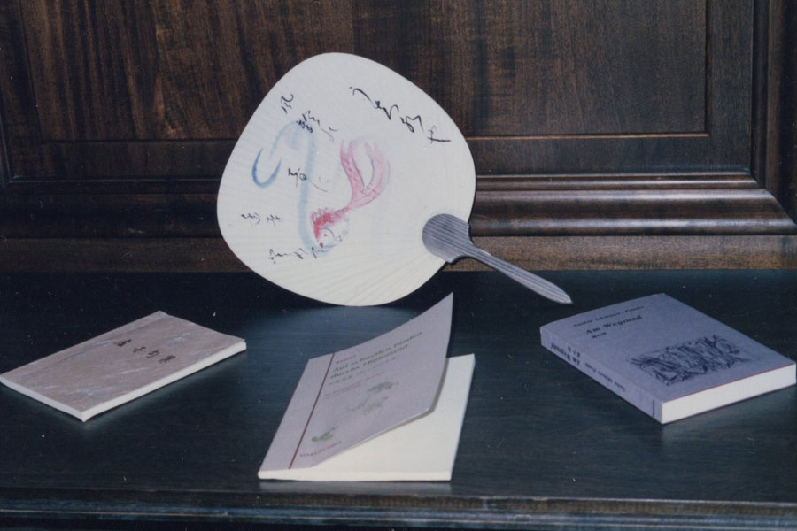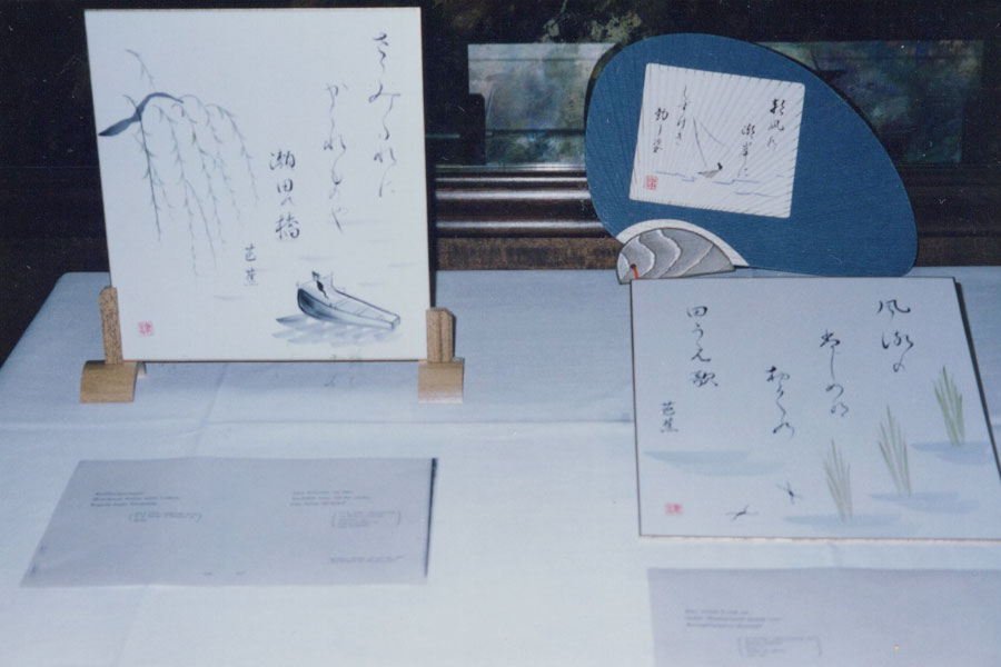 俳画は、俳句に絵を施しますが、一筆で描かなければなりません。なぞり書きができないのが特徴です。また、俳句に付ける絵も、季節は同じでも、同じ物は描けません。例えば紫陽花の俳句に紫陽花を描いてはいけないのです。日本人は、くどくなるのを好まないからです。いかにも日本人らしいですね。そういった事をドイツ人に分かってもらうのは一苦労ですが、季節の感じ方には似たところもあって、俳画による文化交流は興味深いものでした。