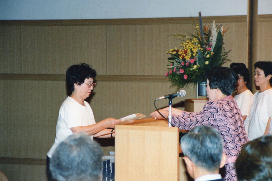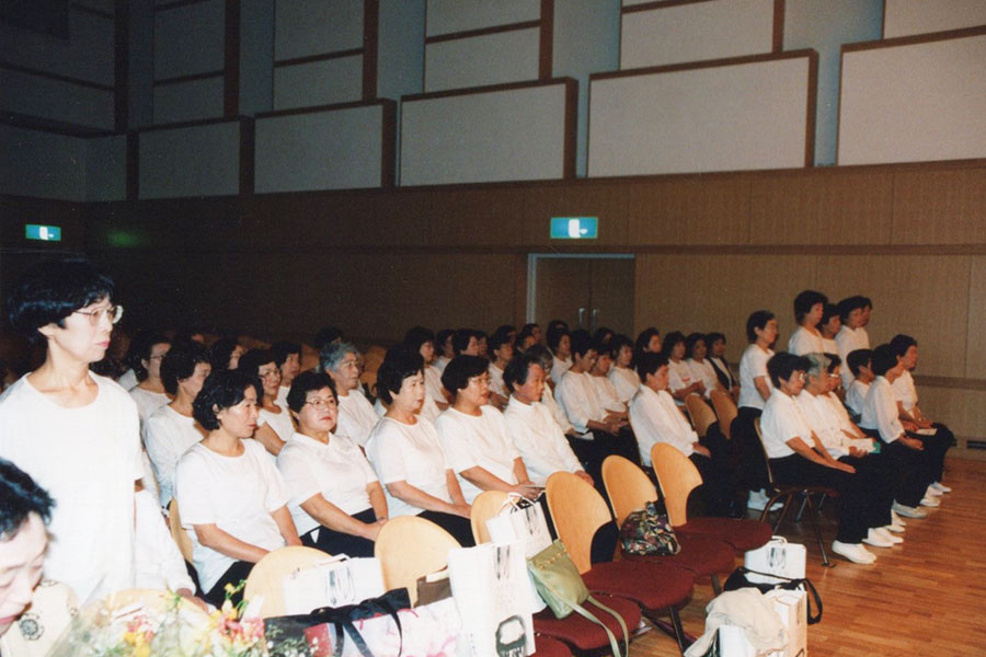 母は小学校の音楽の先生でもありましたので、家で歌の教室も開きました。難しい歌曲ではなく、カラオケ教室です。しかしカラオケと言っても、むやみに歌うのではなく、発声をし、また楽譜に則って歌いました。「初講の日の事は忘れられない」と言います。と言いますのは、父が一番前に座っていたからです。母は父に教室開講について特に何も言っていませんでした。父は歌がとびきり下手なので、相談もしなかったのです。しかし父は生徒になろうと決意し、妻の教室の初講の日に門をくぐったのです。夫が妻の弟子になる、ということは今の若い夫婦ではなんということはないかもしれませんが、大正生まれの父が母の弟子になるなんて、信じられない光景でした。