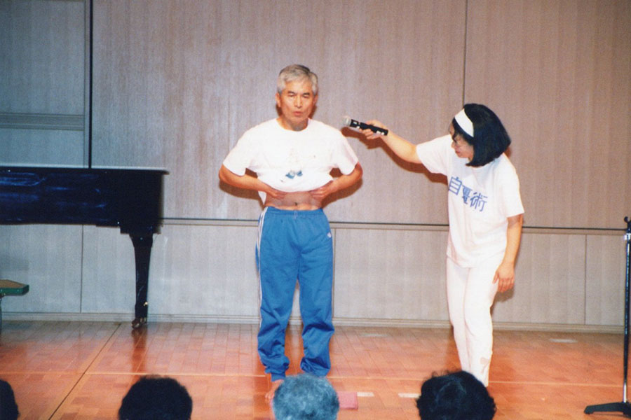父母はそれぞれの学校を退職し、新たな道を歩み始めました。父は地域の観光ボランティア活動に、母は家事労働にいそしむようになりました。しかし急に家ばかりに居るようになった母に、神経痛が出ました。私が自彊術を教えたところ、その痛みが消えたのです。多分血行不良になりかけていたのでしょう。初期の段階だったのが幸いしたようです。母は「自分も自彊術を習いに行く」と言い、その後10年間教室にまじめに通い続け、ついに教室を開けるようになりました。もともと小学校の先生だったので、教え方が上手であったのかもしれません。次々に生徒さんに恵まれ、ついに5クラスにもなりました。